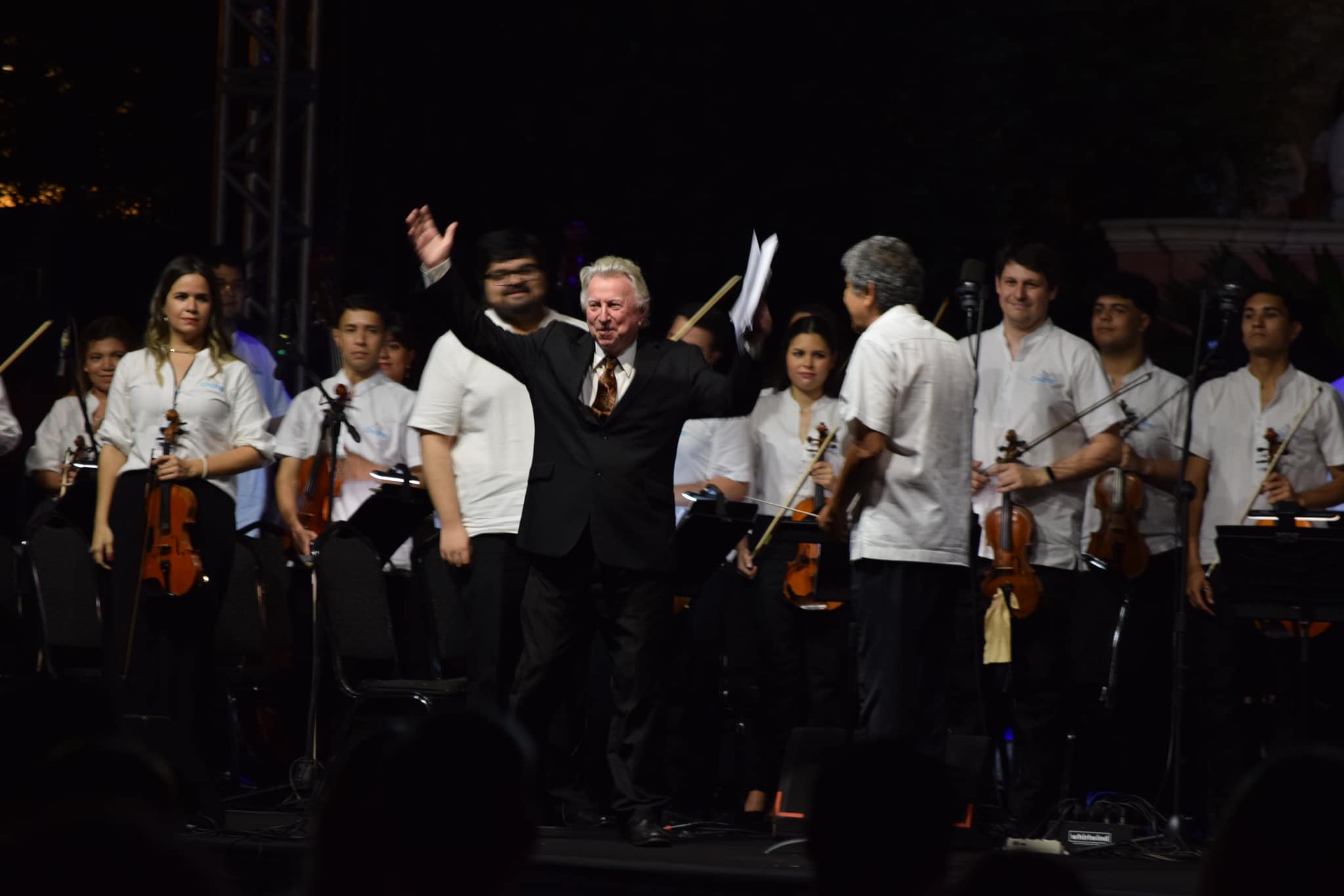 A todos los músicos, que con sus voces, talento y esfuerzo, se unieron para preservar nuestra herencia cultural, siempre al servicio de la comunidad artística. ¡Ustedes son la esencia de esta orquesta! Nuestro sincero agradecimiento al Poder Ejecutivo, en la persona del Presidente de la República Santiago Peña y su Gabinete, a la Primera Dama de la Nación Leticia Ocampos , y a los funcionarios de las dependencias de la Presidencia, quienes trabajaron de manera incansable para que este sueño cobrara vida.